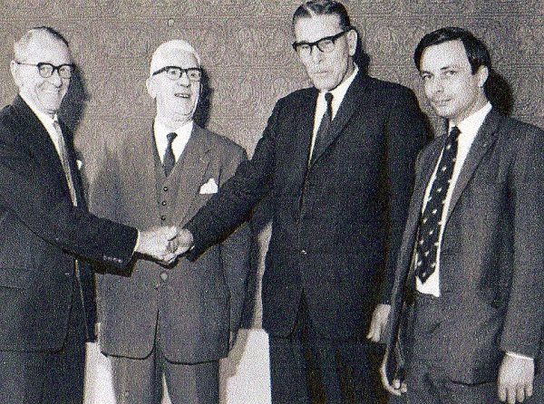 Retirement of Fred Rosedale (Emlyn Jones shaking hand) |